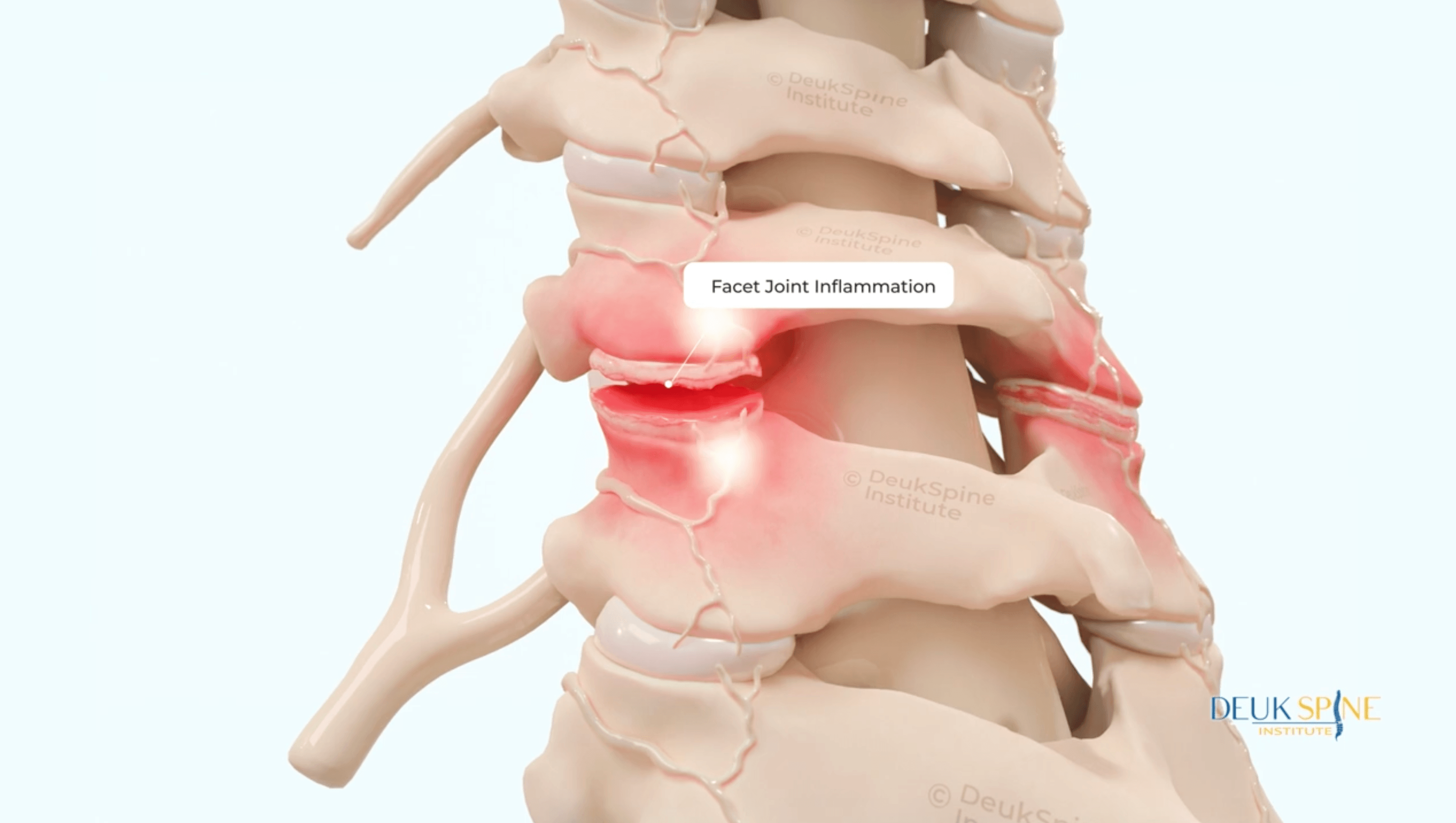 Localized back or neck pain: Most patients experience pain directly over the affected facet joints. This pain is typically worse with extension (bending backward) and rotation (twisting) of the spine.